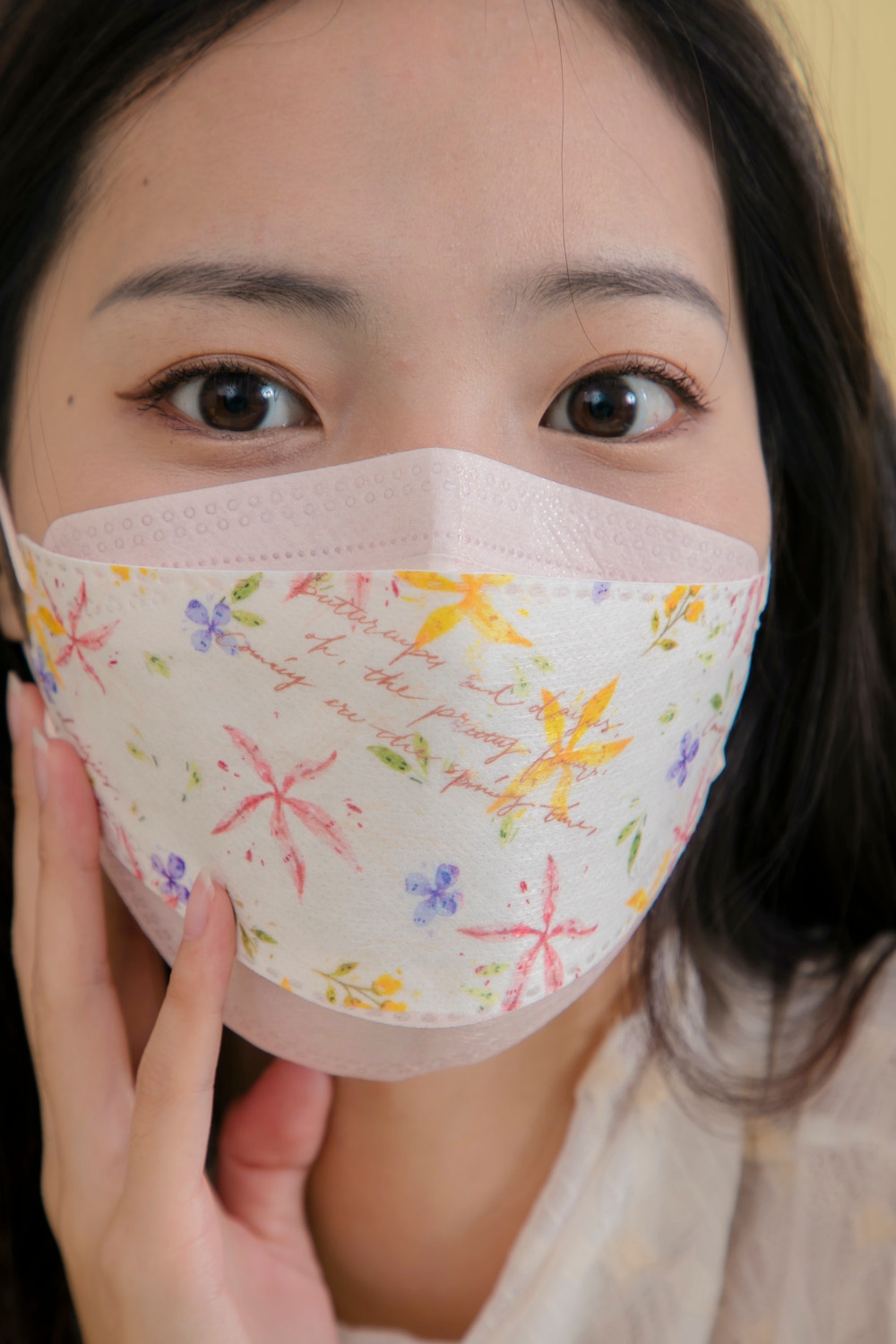 3. Gently press the fold line of the bridge of the nose with your fingers to ensure a tight fit.