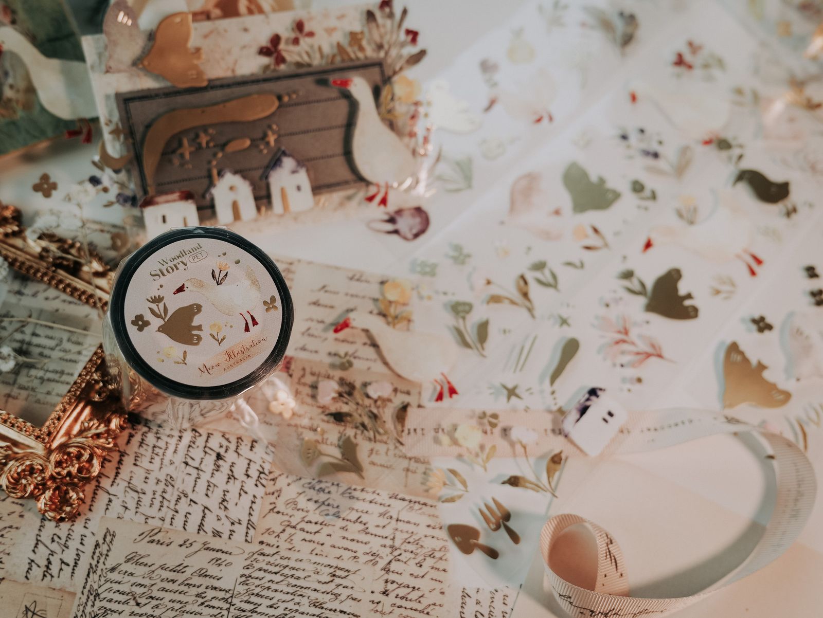 Woodland story Glossy PET tape with Matte Gold