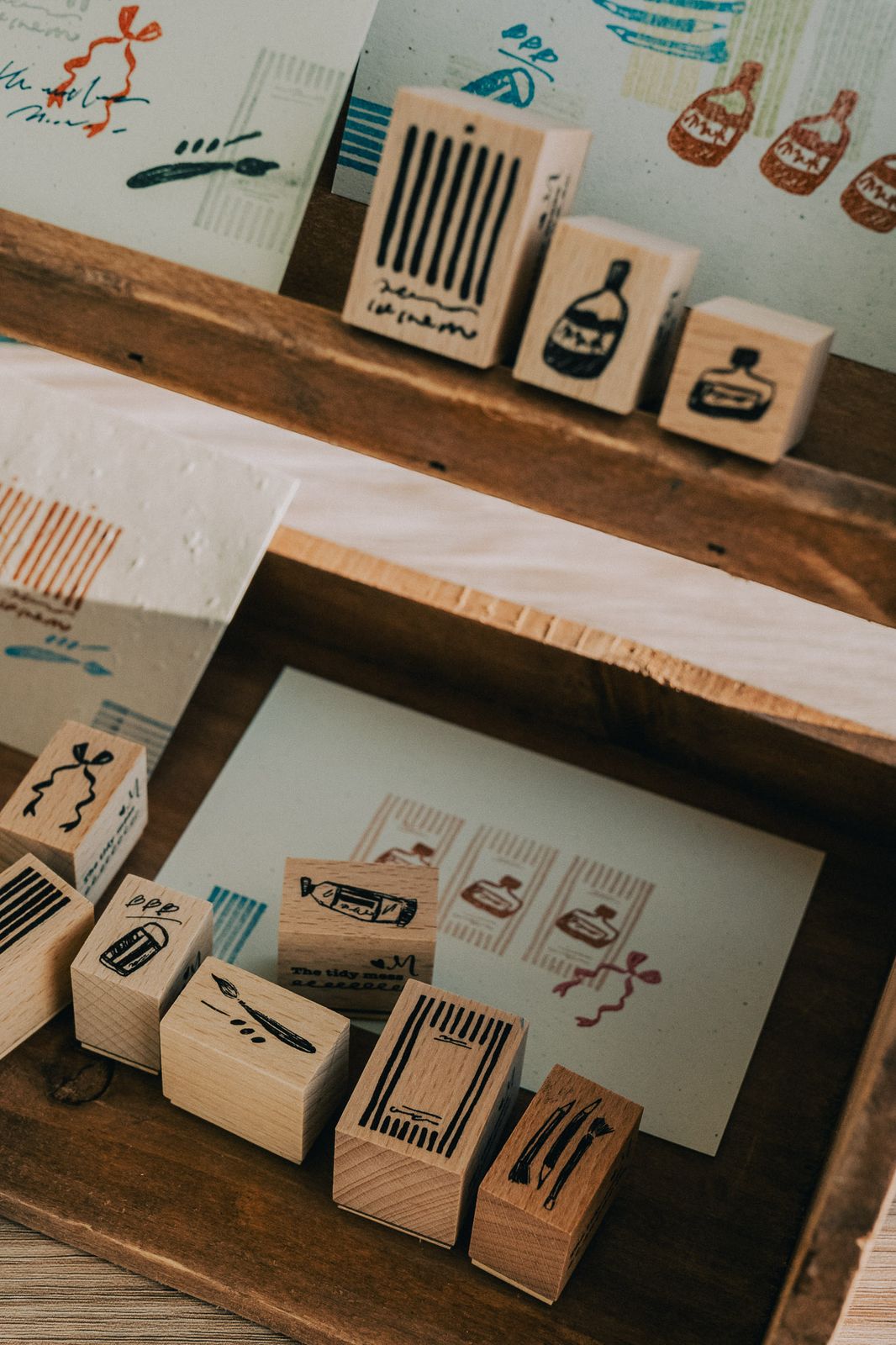 取手材質 |櫸木印章 膠皮|米黃膠皮+咖啡泡綿 尺寸| 1.5 x 2.0 cm, 2.0 x 3.0 cm, 1.5 x 2.5 cm